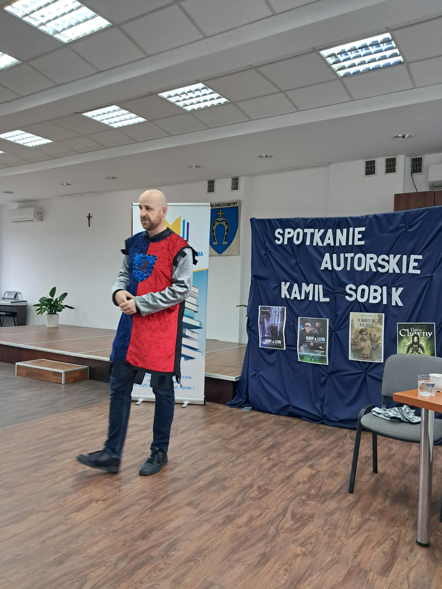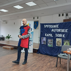W dniu 23.09.2025 r. Gminna Biblioteka Publiczna w Wielgomłynach zorganizowała wydarzenie jakim było spotkanie autorskie z pisarzem Panem Kamilem Sobik. Pan Kamil zadebiutował na rynku powieścią Gary & Litin: Maroszek. Jest to seria składająca się z dwóch książek. Jej druga część nosi tytuł Order Cyncynata. Jest również autorem powieści historycznej zatytułowanej „W drodze do wolności. Z kolei jego najnowsza powieść wydana latem tego roku nosi tytuł „Bunt Charny” i jest to książka należąca do gatunku fantasy. Pan Kamil prowadzi blog pisarski, gdzie udostępnia krótkie opowiadania fantasy, sensacyjne i historyczne. Na co dzień jest reklamodawcą w mediach społecznościowych oraz entuzjastą gier komputerowych.
