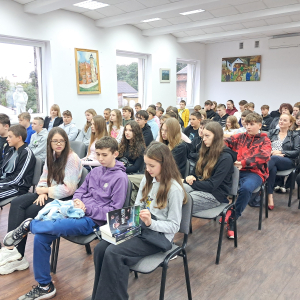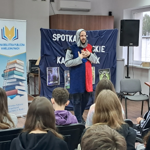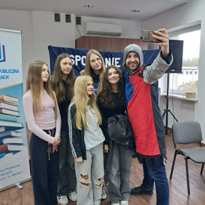 Spotkanie zorganizowane zostało dla uczniów klas VII-VIII szkół podstawowych. Autor z zaangażowaniem opowiadał o swojej drodze pisarskiej oraz o książkach, które wydał. Nie zabrakło autografów oraz pamiątkowych zdjęć. Mamy nadzieję, że to spotkanie na długo pozostanie w pamięci młodzieży, która wzięła w nim udział.